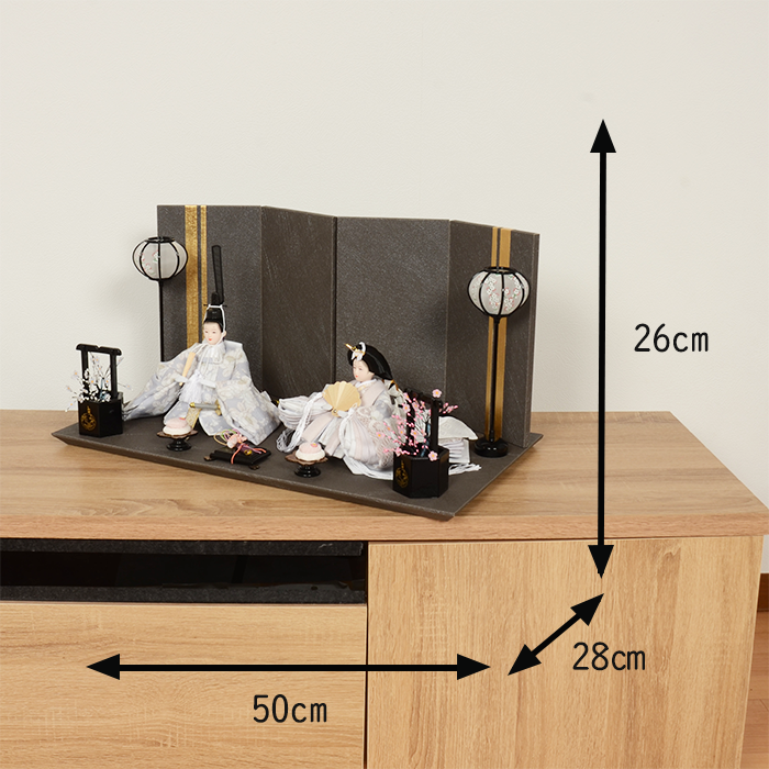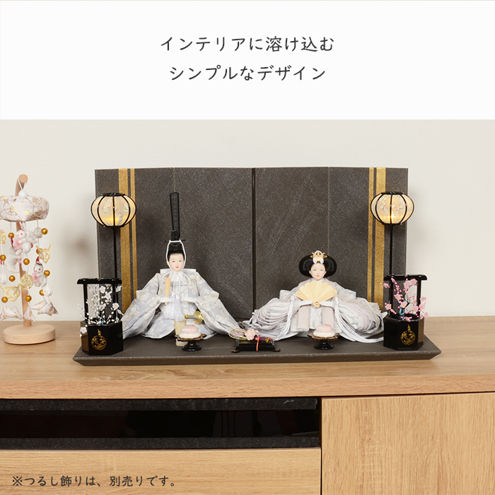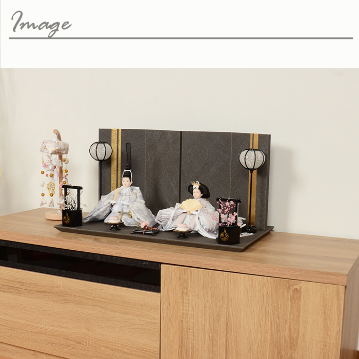 屏風の金ラインがアクセントになる 高級感ある親王飾りです。