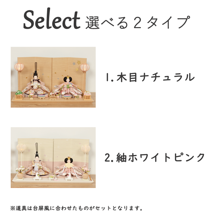 雛人形 親王飾り 選べる2種類 【 木目ナチュラル / 紬ホワイトピンク 】