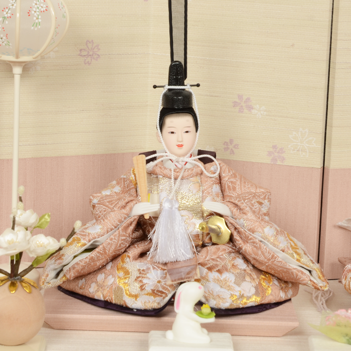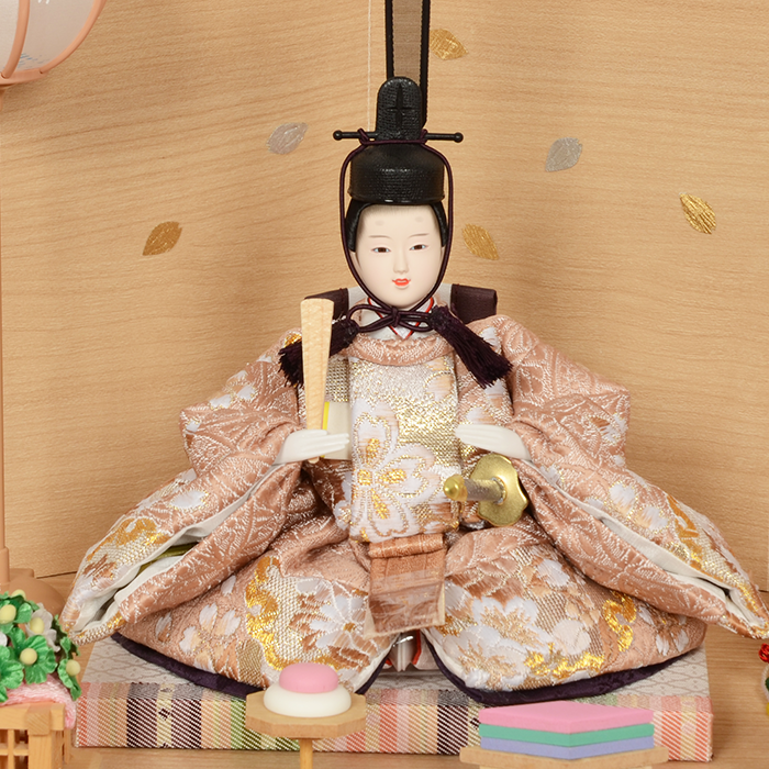 お顔の表情は、お雛様の命。優しい微笑を浮かべたお雛様のお顔は、見ているだけで幸せな気持ちになります。 優しく微笑むお顔が魅力のお人形に、職人が仕立てた豪華絢爛な衣裳を丁寧に着せつけました。お姫様のかさねもボリュームたっぷりで、見応えのある美しい仕上がりご家族皆様でお楽しみいただけるお雛様となっております。