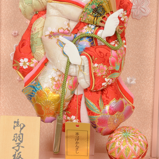 【匠一好の羽子板の特徴】 優しげな表情に気品高い情感をかもし出す「匠一好」のお顔は、日本画の美人画を模範としています。手書きならではの豊かな表情が特徴です。衣装は金彩を施した華やかな羽子板となっております。