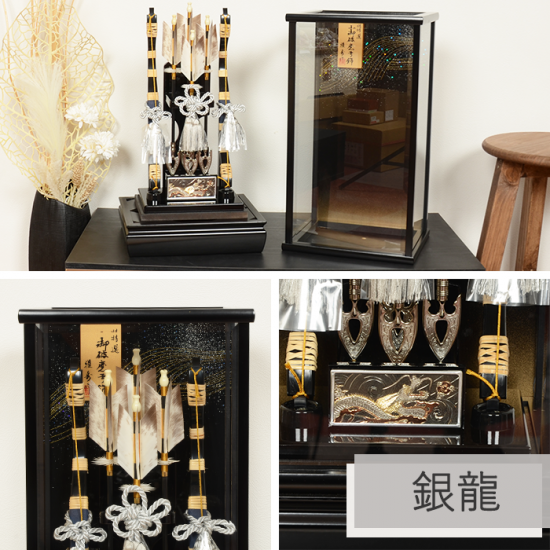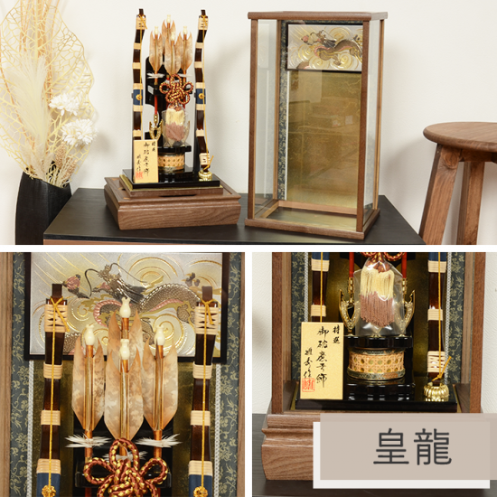 破魔弓 選べる2種類 ケース飾り 【 13号 銀龍 ぎんりゅう/皇龍 こうりゅう ガラスケース 】