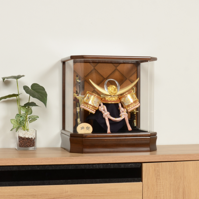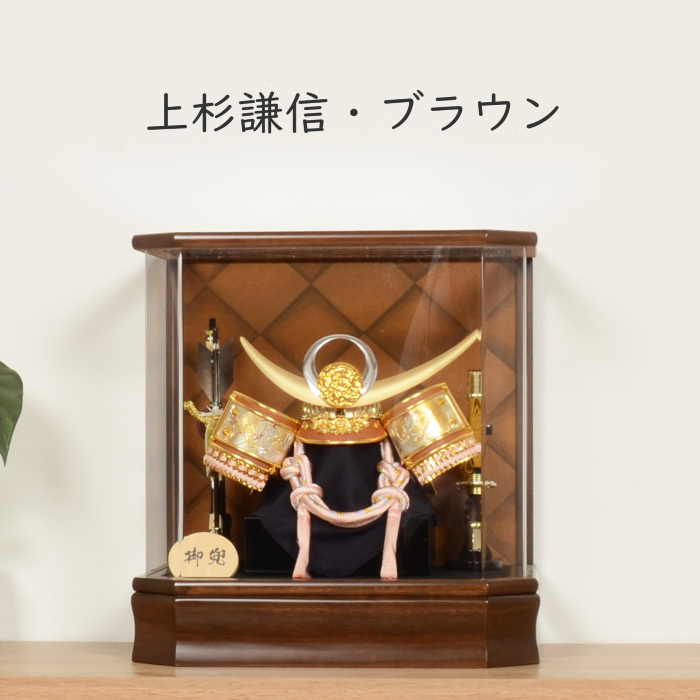 五月人形 ケース飾り 【 上杉謙信 ブラウン 】
